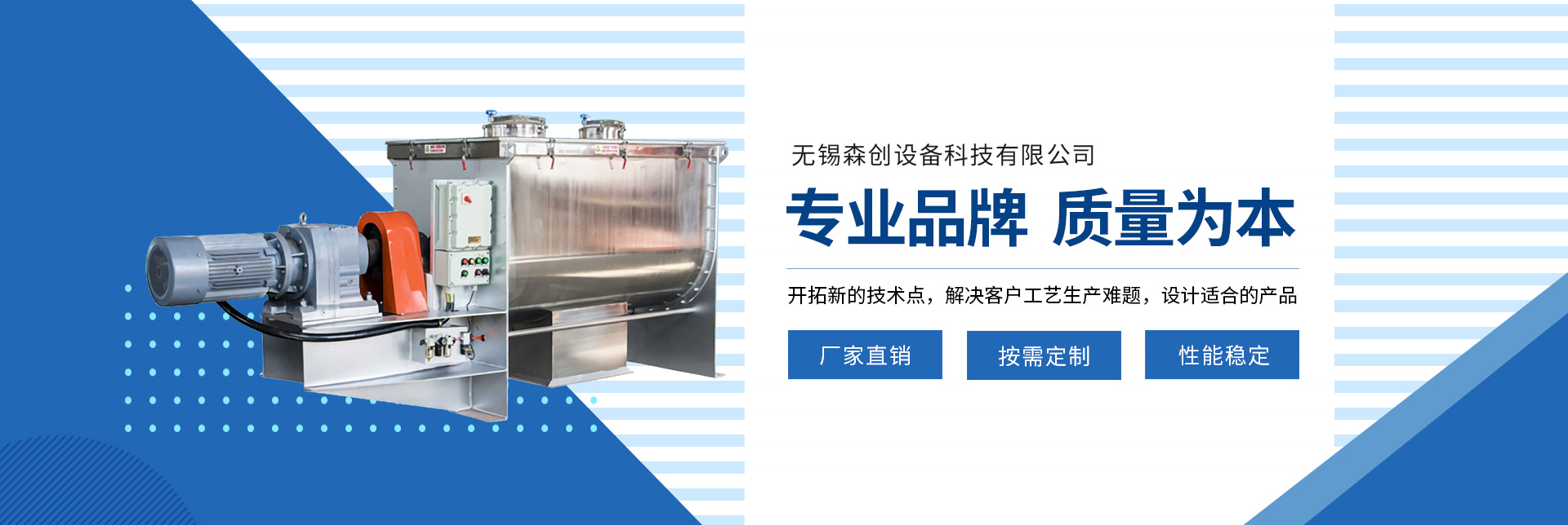 無(wú)錫森創(chuàng)設(shè)備科技有限公司專(zhuān)項(xiàng)從事混合設(shè)備的研究、設(shè)計(jì)、制造、銷(xiāo)售、服務(wù),深入混合工藝領(lǐng)域的設(shè)備技術(shù)與配置技術(shù)...